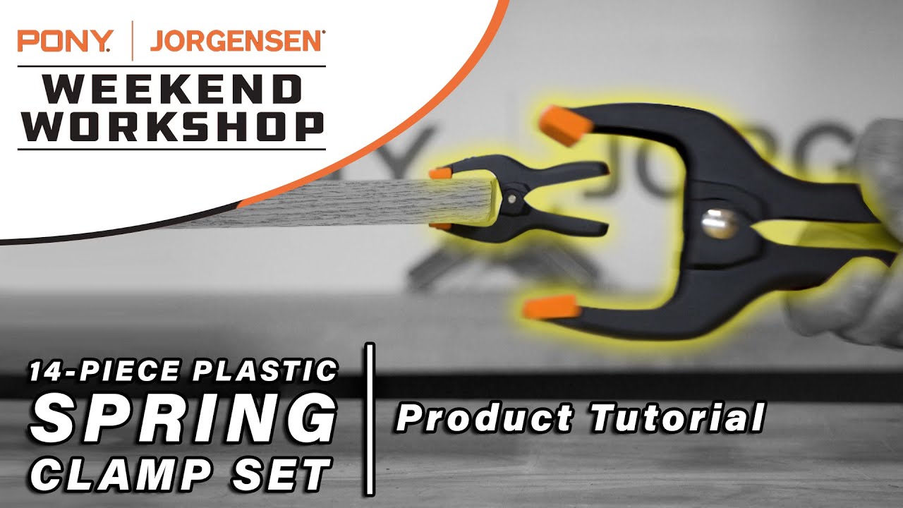 Pony plastic spring clamp has something for any job requiring frequent clamping and unclamping. Light‑weight plastic jaws are designed for comfortable and durable use. Jaws and handles are glass filled nylon. Spring is heavy‑duty tempered steel for maximum strength. And they feature protective pivoting jaw pads to ensure a tight hold on your projects without causing damage.